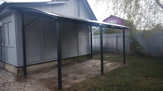 Полуарочный навес из поликарбоната (пристройка к дачному дому) Арт-678