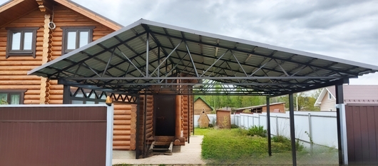 Двускатный навес с крышей из профлиста для установки на загородном участке Арт-720